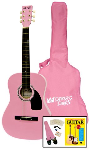 !±8±Darling Divas Acoustic Steel String Guitar Package for Girls; Color - Cotton Candy Pink. Includes an acoustic guitar, color gig bag, strap, picks, pitch pipe tuner, string winder and instruction book.